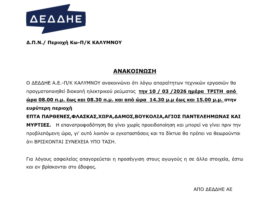 Κάλυμνος, Απριλο – Μάρτης