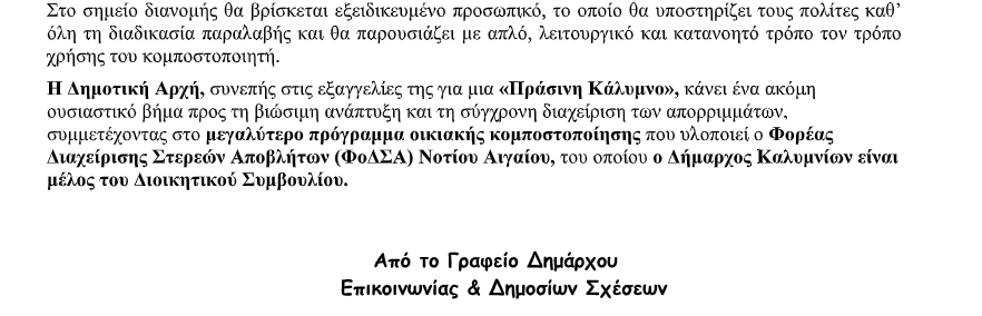 Από το Γραφείο Δημάρχου Καλυμνίων Ι.Μαστροκούκου , εκδόθηκε το παρακάτω δελτίο τύπου: