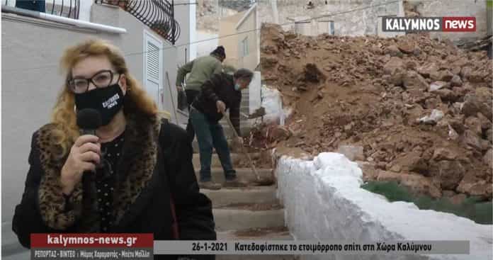 Σήμερα Τρίτη 26 Ιανουαρίου 2021 ο φακός  kalymnos-news.gr  κατέγραψε τις εικόνες από την κατεδάφιση του σπιτιού που είχε προχωρήσει συνεργείο του Δήμου.