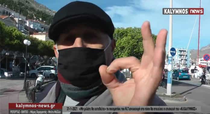 Σήμερα Κυριακή 31 Ιανουαρίου 2021 μιλώντας στο φακό του kalymnos-news.gr στο ερώτημα που του τέθηκε «πόσο θα στοιχίσει η επισκευή του Ν.Κάλυμνος;»αντί ουσιαστικής απάντησης, με φανερό εκνευρισμό και με «απειλητικό ύφος» απευθυνόμενος στο Μάμα Χαραμαντά είπε: