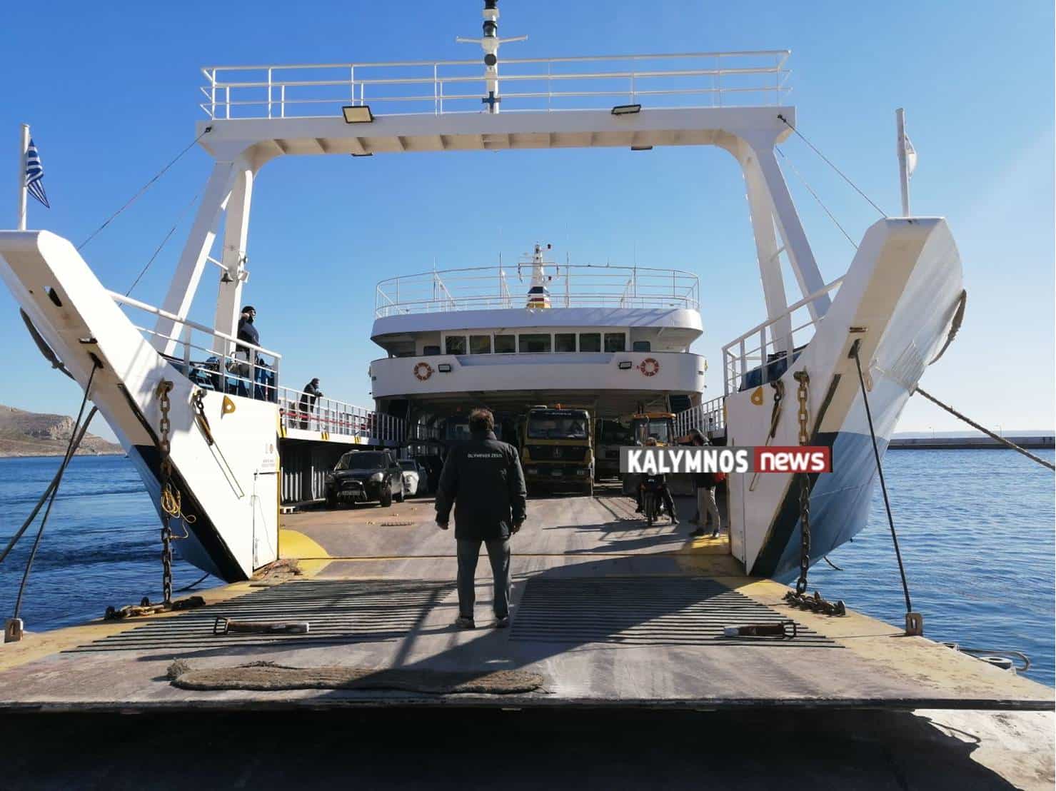 Ήδη στις 12.00 το μεσημέρι το «ΟΛΥΜΠΙΟΣ ΖΕΥΣ»  επέστρεψε από το πρώτο του δρομολόγια με τα φορτηγά αυτοκίνητα γεμάτα απορρίμματα που θα μεταφερθούν στον ΧΑΔΑ Καλύμνου.