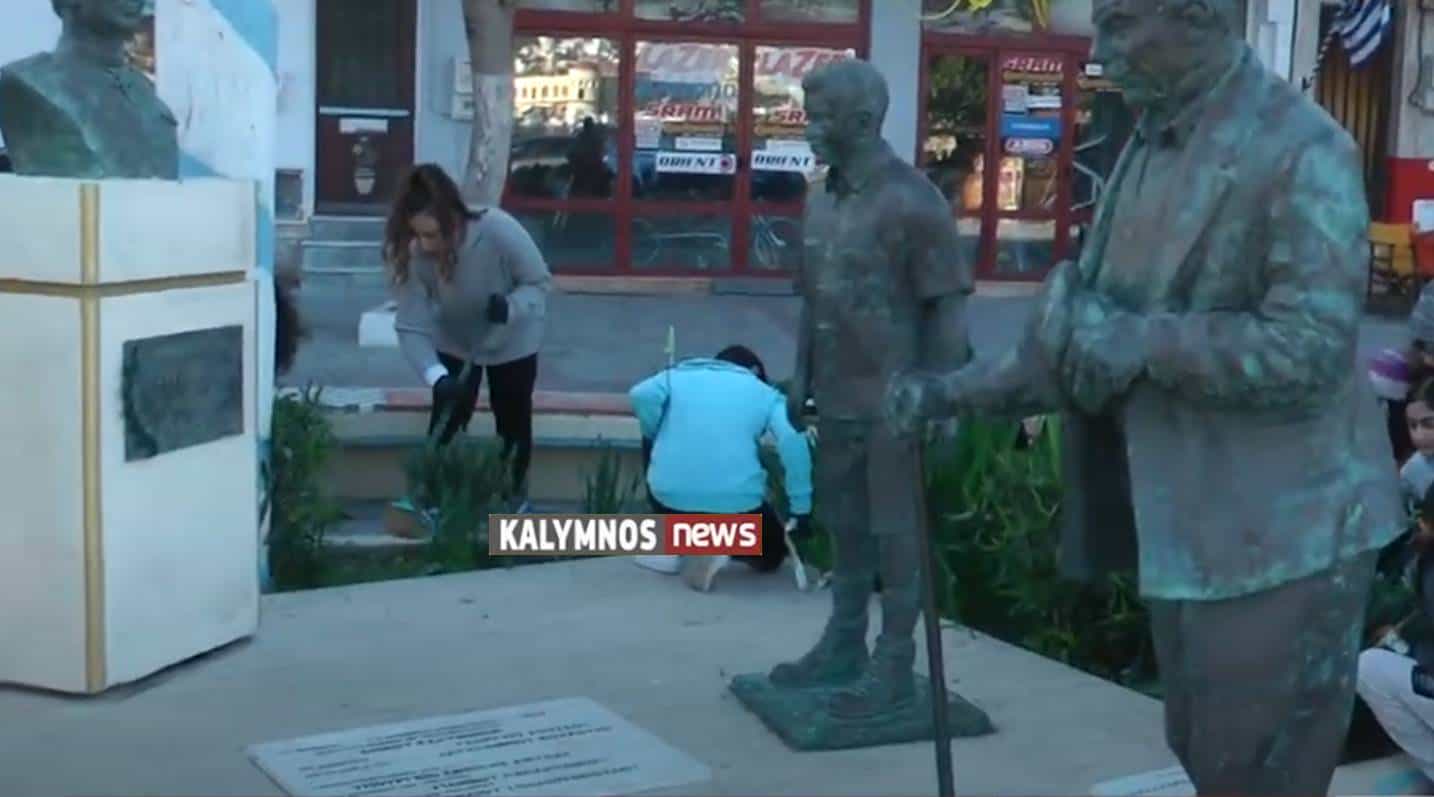 Τα 2 αγάλματα και οι 3 προτομές που συνθέτουν το μνημείο είναι μία εντυπωσιακή, προσεγμένη δουλειά του Καλύμνιου γλύπτη  Σακελλάρη Κουτούζη.