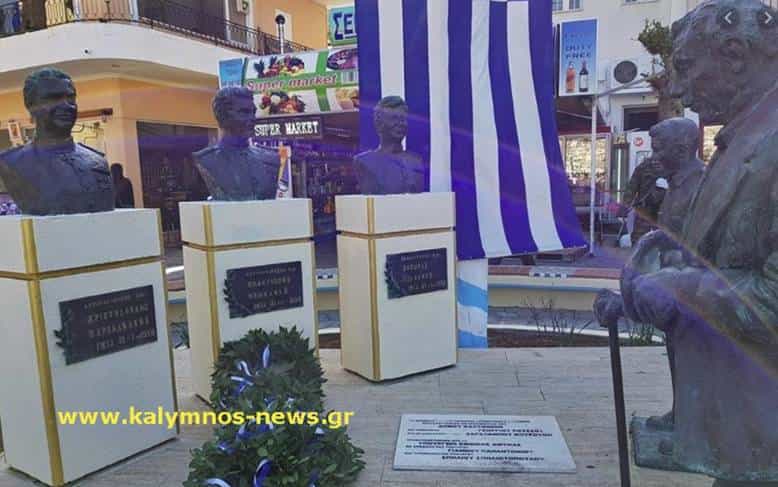 Με αφορμή την επέτειο αυτή, το kalymnos-news.gr  παρουσιάζει κάποια στοιχεία άγνωστα στο ευρύ κοινό, για το μνημείο που στήθηκε στην Κάλυμνο ως ελαχίστη τιμή στη μνήμη των τριών Αξιωματικών του ΠΝ και που ουδέποτε πραγματοποιήθηκαν τα επίσημα αποκαλυπτήρια του!!