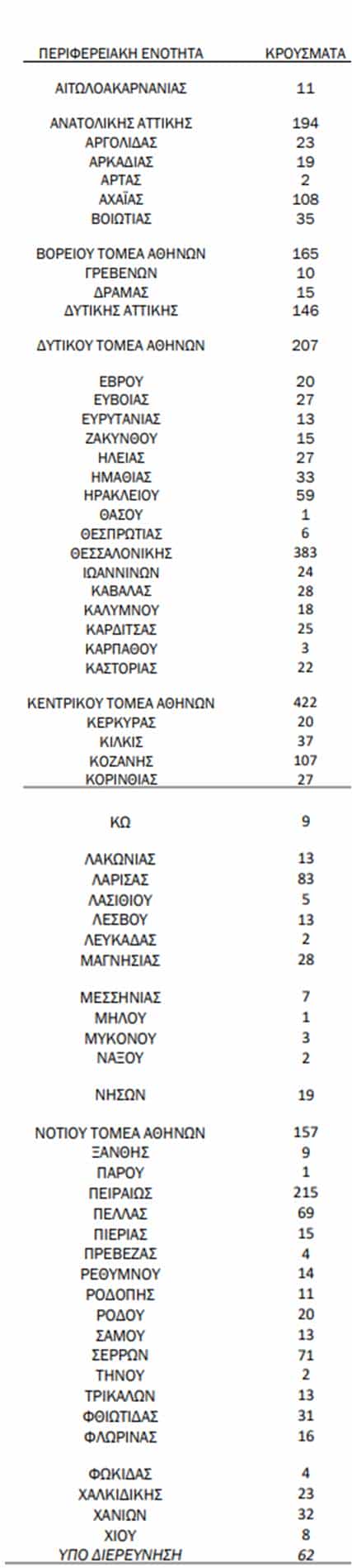 Η Γεωγραφική κατανομή των κρουσμάτων ανά ΠΕ: