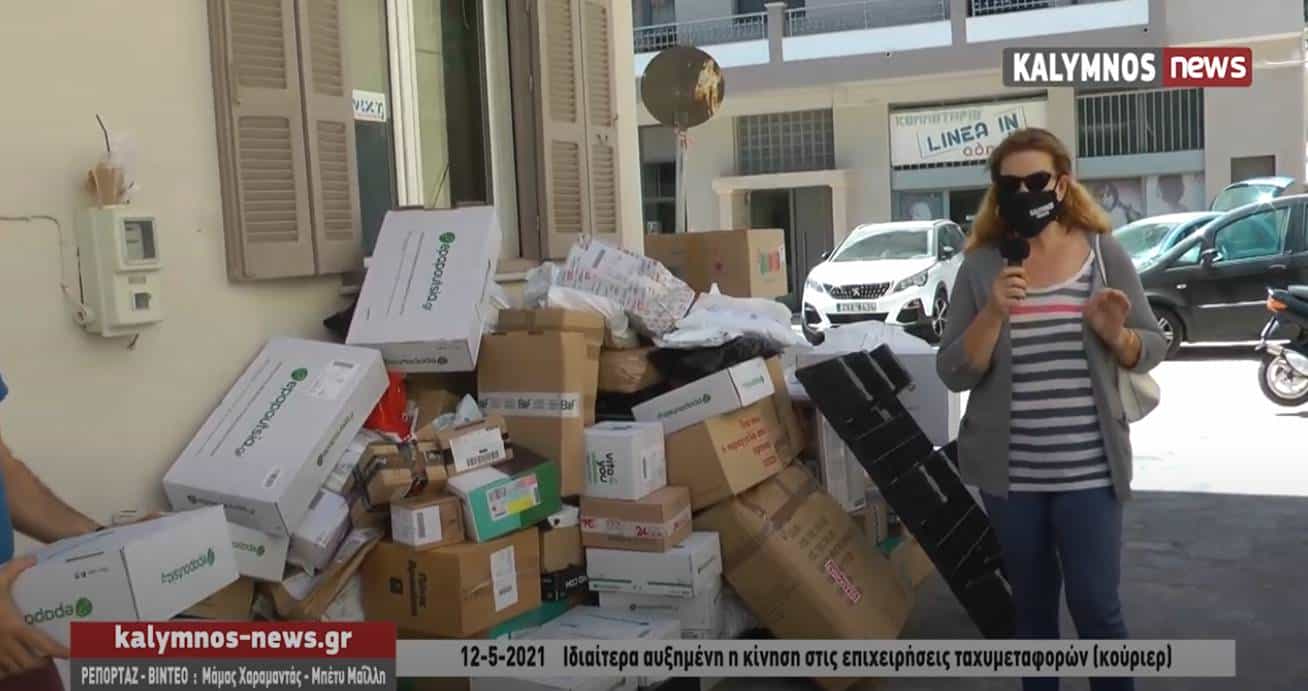 Ιδιαίτερα αυξημένη η κίνηση στις επιχειρήσεις ταχυμεταφορών (κούριερ) στην Κάλυμνο (video)
