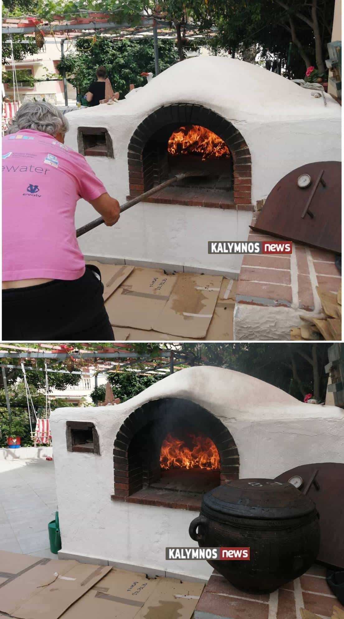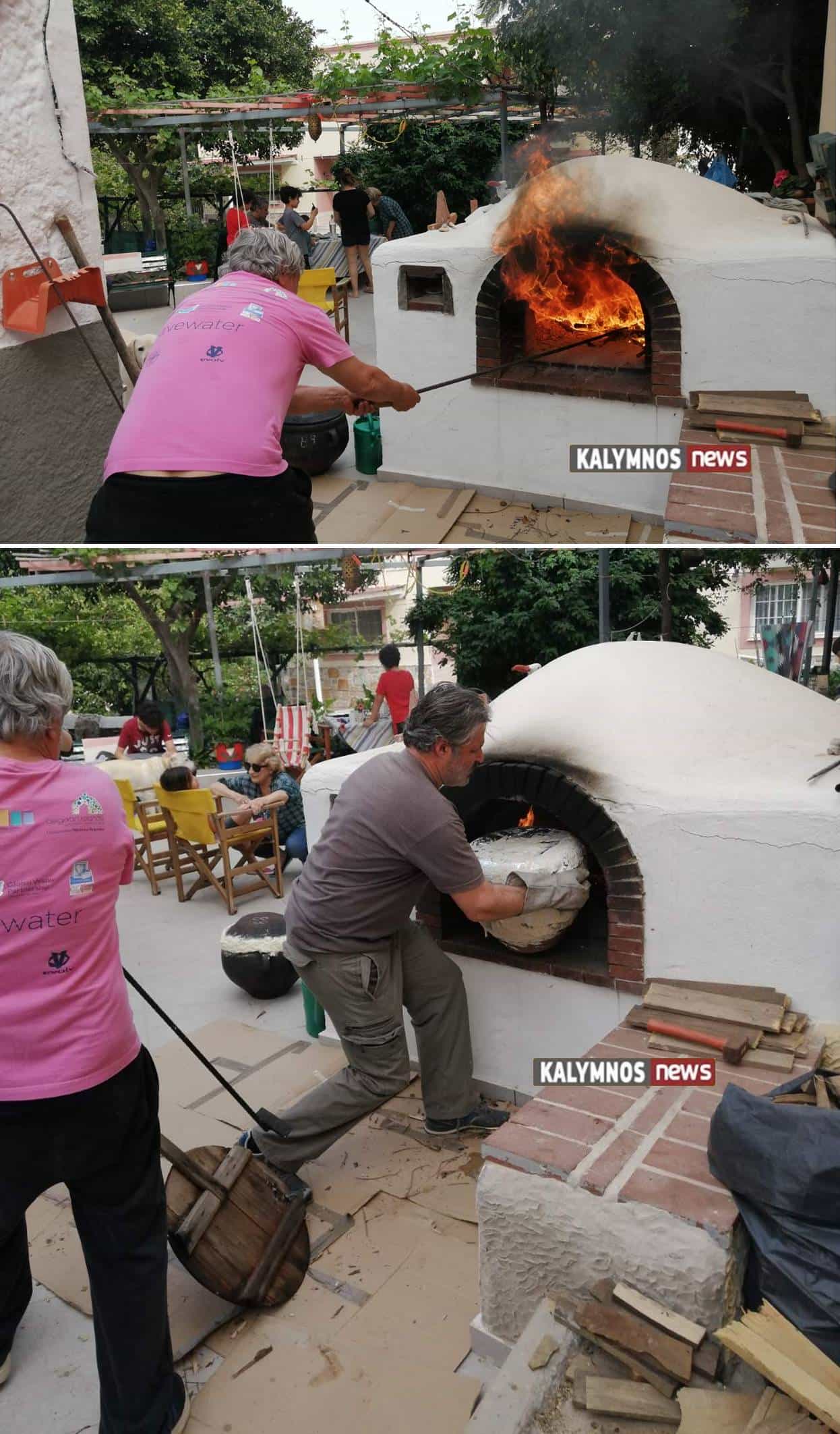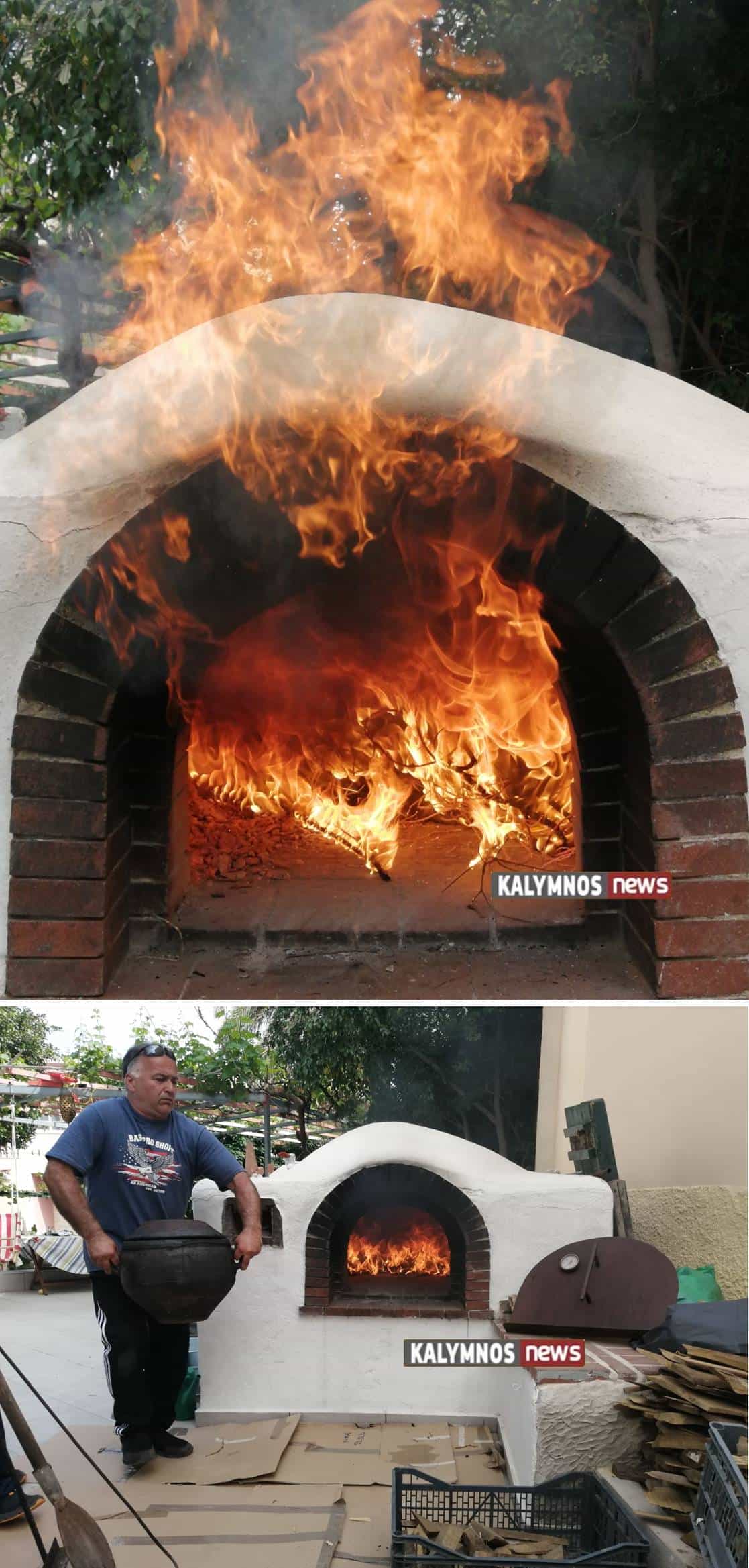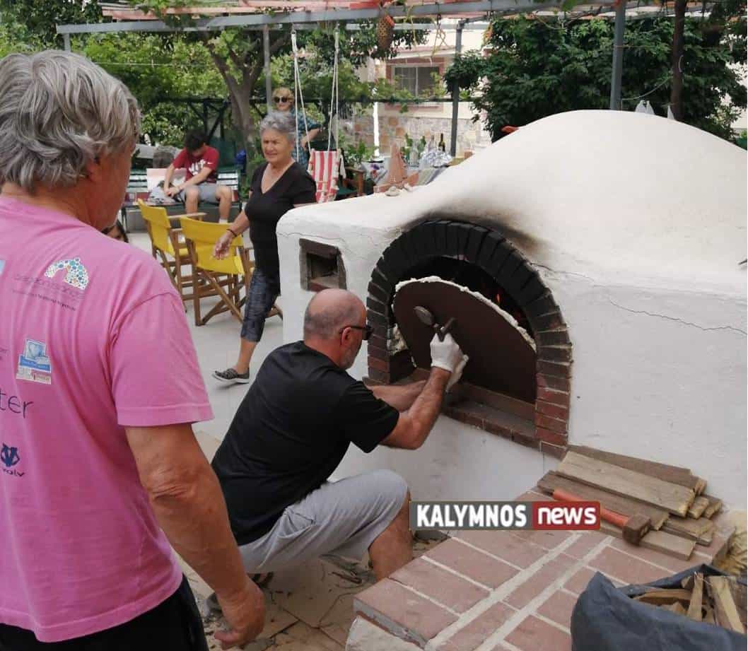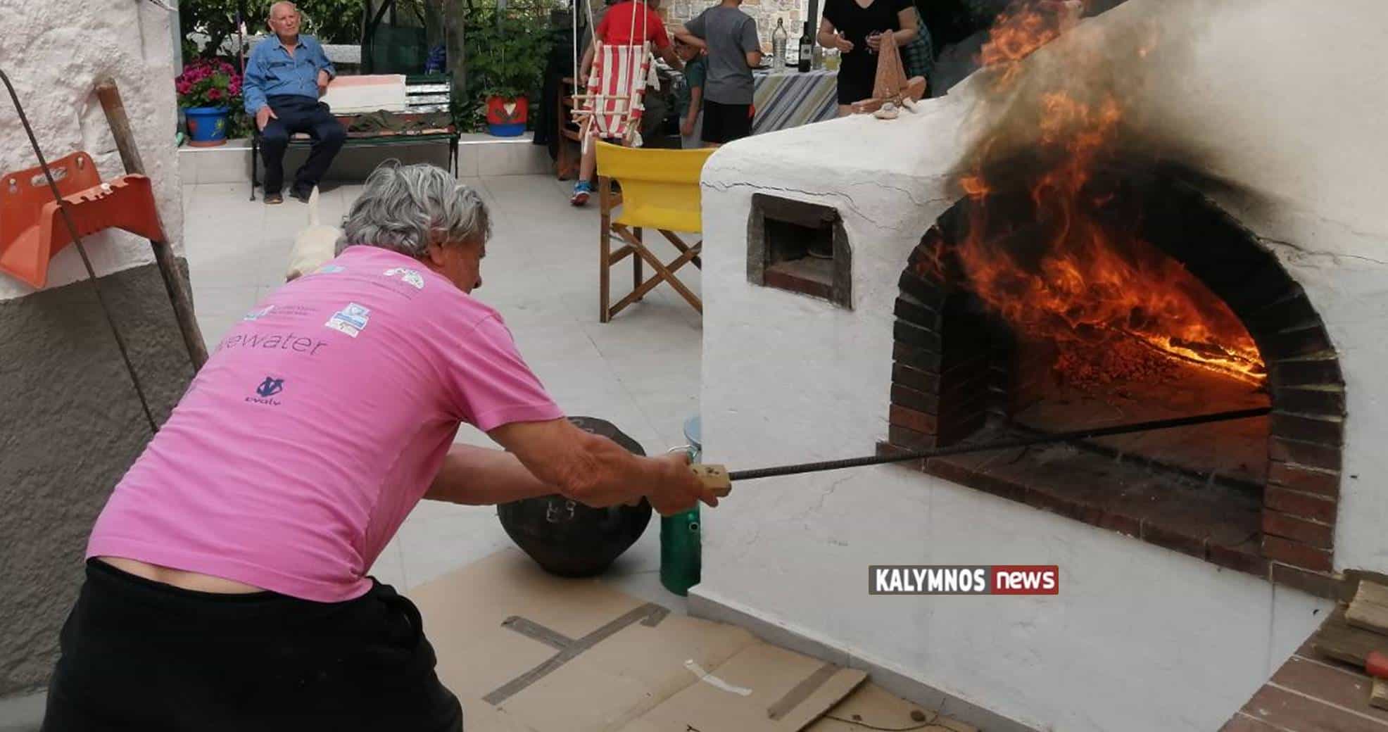 Ο Μάμας φουρνίζει σε παραδοσιακό φούρνο το Καλύμνικο μουούρι.