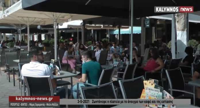 Το πολυαναμενόμενο άνοιγμα έφερε τον κόσμο και πάλι στα γνώριμα μέρη που σύχναζε. Τα καταστήματα εστίασης στην κεντρική πλατεία της Καλύμνου ζωντάνεψαν.