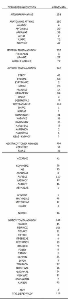 Δείτε αναλυτικά τα κρούσματα ανά ΠΕ