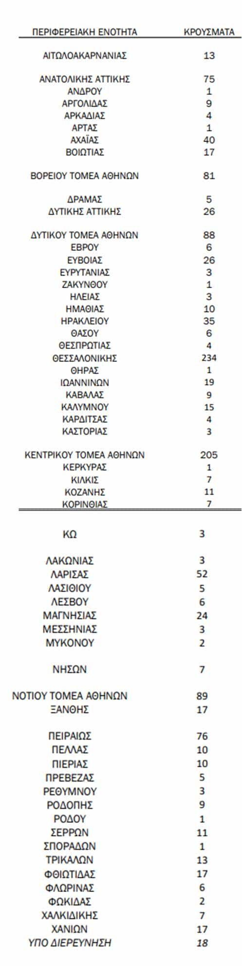 Δείτε αναλυτικά τα κρούσματα ανά ΠΕ
