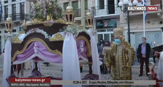 Με ανοιχτές  τις εκκλησίες στην Κάλυμνο, όπως σε όλη τη Χώρα,  αλλά και με αυστηρούς περιορισμούς εξαιτίας της πανδημίας, η κορύφωση του Θείου Δράματος την Μεγάλη Παρασκευή 30 Απριλίου 2021 με την ακολουθία και την περιφορά των Επιταφίων
