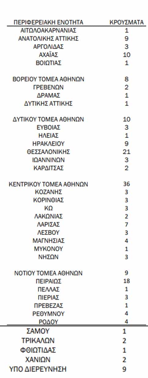 Δείτε αναλυτικά τα κρούσματα ανά ΠΕ