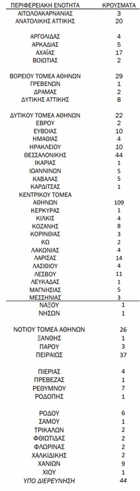 Δείτε αναλυτικά τα κρούσματα ανά ΠΕ
