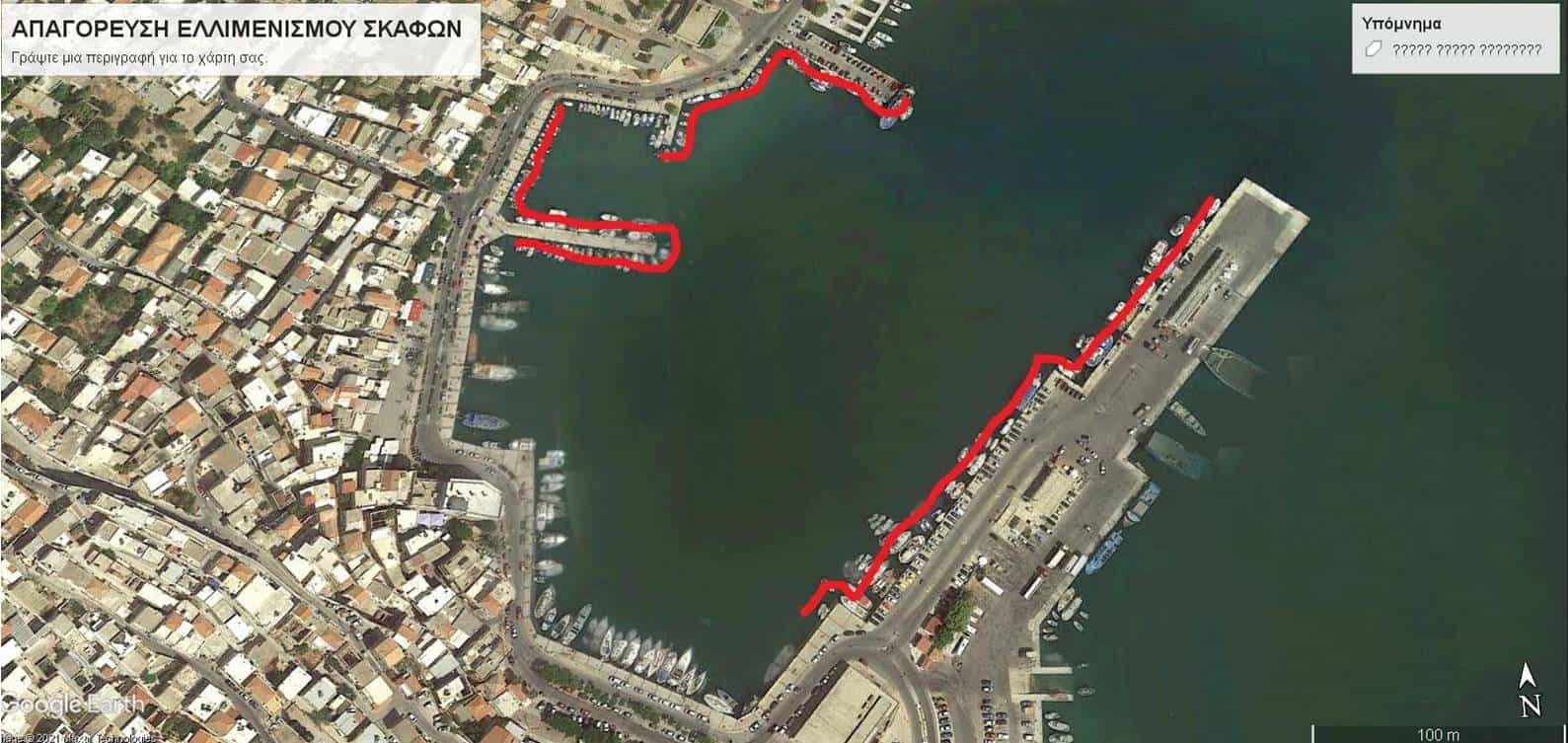 γ) Από την προβλήτα (κορδόνι) έναντι Επαρχείου έως και την προβλήτα (κορδόνι) έναντι Δημαρχιακού Μεγάρου.