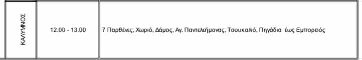 Πρόγραμμα εκ περιτροπής διακοπών ηλεκτροδότησης σε Κάλυμνο την Κυριακή (μέχρι 15.00)