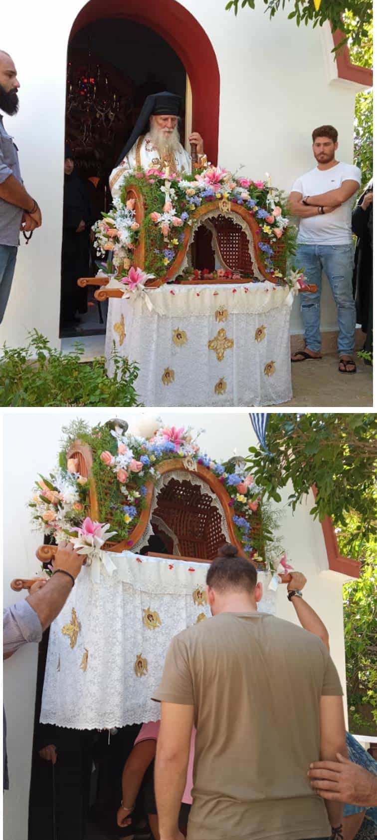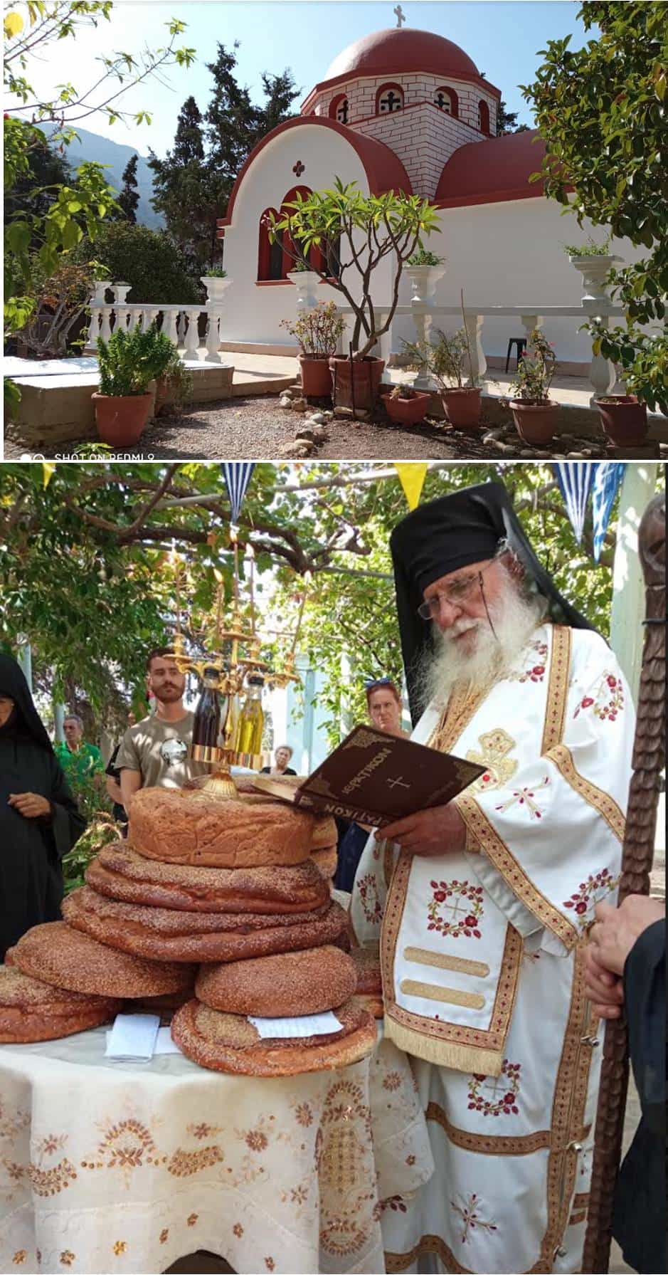 Σήμερα, ήταν ο εορτασμός της Κοιμήσεως της Θεοτόκου με το παλαιό ημερολόγιο, και δεκάδες πιστοί με καϊκάκι από τις Μυρτιές, ξεκίνησαν να πάνε στο ευλογημένο Πυθάρι για να εκκλησιαστούν. Ένα μέρος που τα λόγια δεν είναι αρκετά για να περιγράψουν το δέος που νιώθεις κάθε φορά που το επισκέπτεσαι. Στον ιερό ναό της Παναγίας, τελέστηκε η λειτουργία και η αρτοκλασία υπό του σεβασμιωτάτου Μητροπολίτου Καλλινίκου όπου και ό,τι υπάρχει επάνω στον βράχο με αυτό, από ξενώνες μέχρι αμπέλια και λιμάνι, οφείλεται στην προσωπική του εργασία, του ιδίου και των καλογριών. Με τα χέρια τους και μόνο. Γι’ αυτό μιλάμε για ένα μικρό θαύμα..