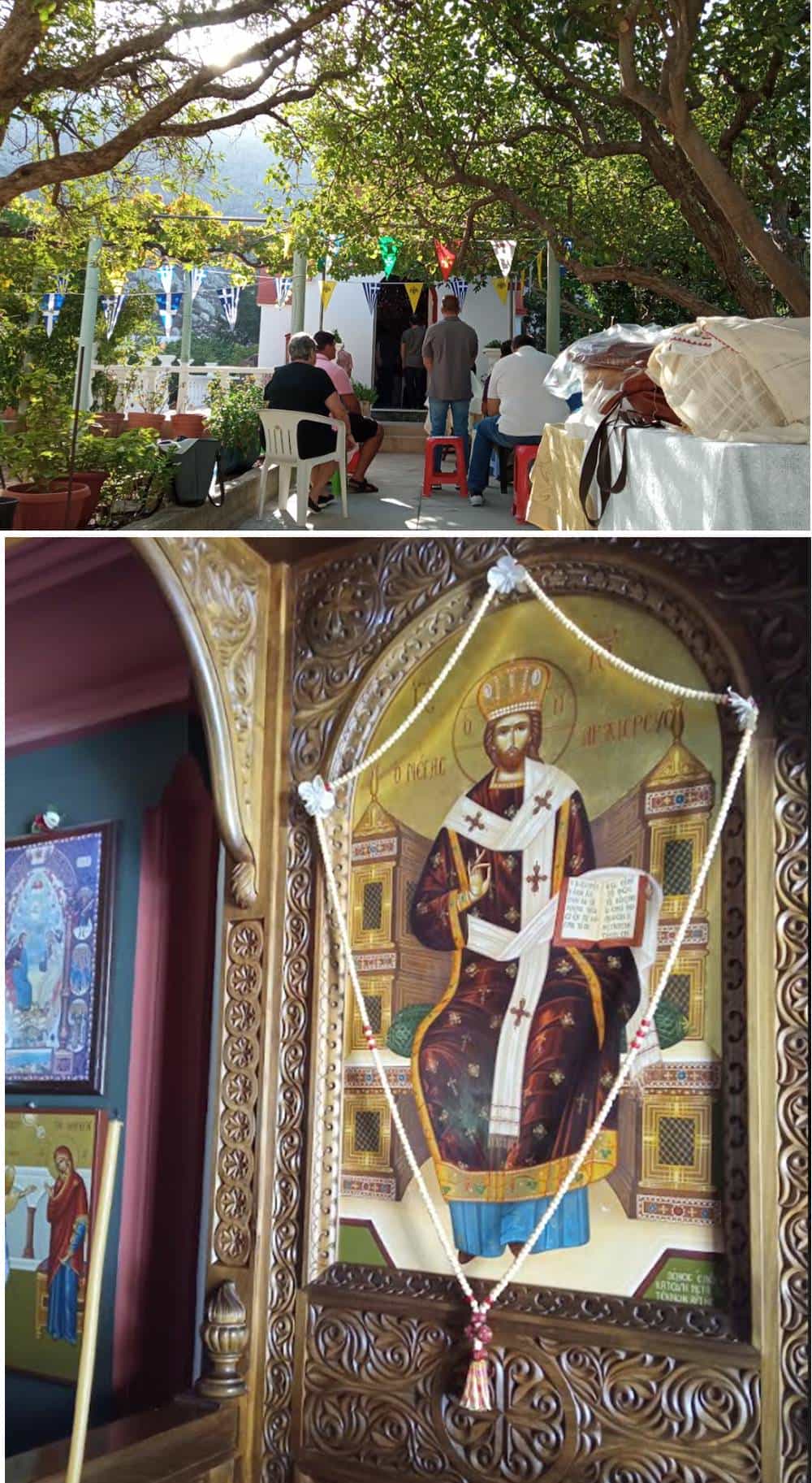Και για άλλη μια φορά, μετά το πέρας της λειτουργίας και τον φλογερό και ουσιαστικό λόγο που έβγαλε ο Δεσπότης Καλλίνικος -που σέβομαι από μικρό παιδί και συμβουλεύομαι- στο ποίμνιο για τις δύσκολες εποχές που ζούμε, πάντα με την ταπεινότητα που τον διακρίνει, οι πιστοί κόπιασαν σε κάποιο σημείο δροσερό, αντάλλαξαν κουβέντες φιλικές και φυσικά.. εξυπηρετήθηκαν από τις καλόγριες με καφέ, πρωινό και μεσημεριανό.