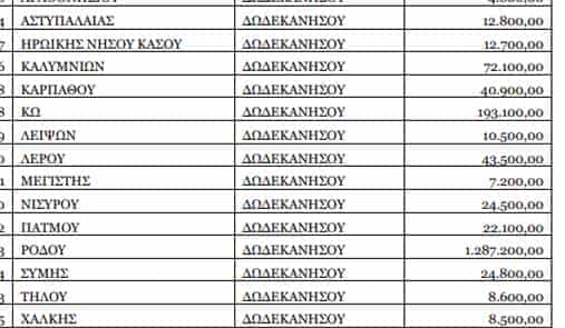 Παρταθέτουμε τον πίνακα με την χρηματοδότηση των Δήμων της Δωδεκανήσου:
