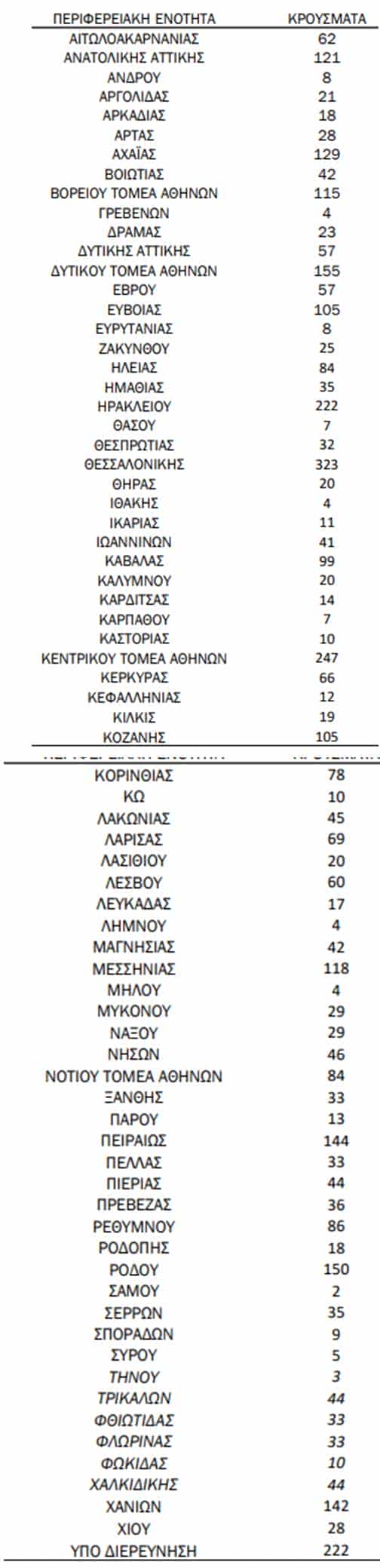 Δείτε αναλυτικά τα κρούσματα ανά ΠΕ