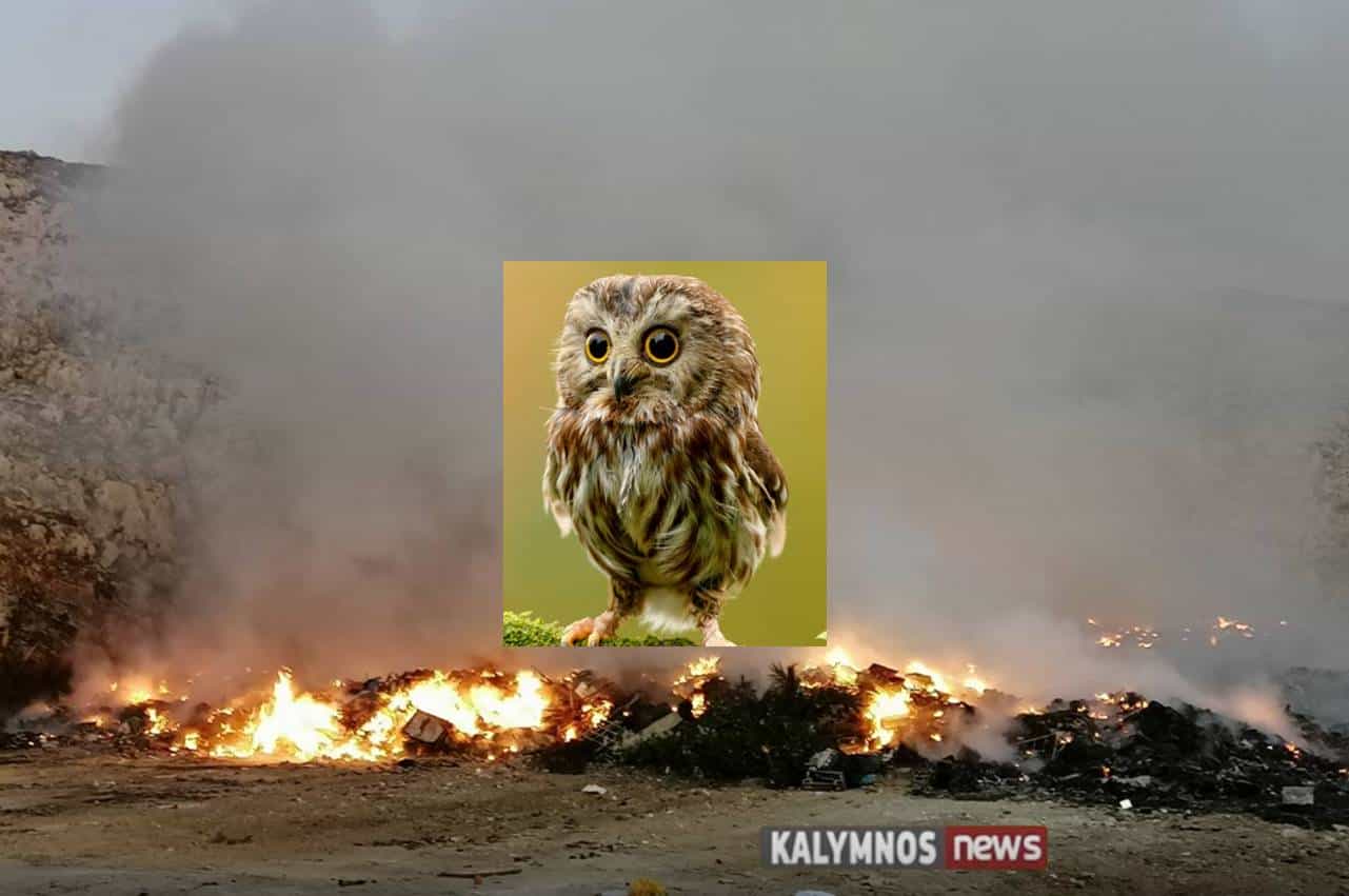 Δυστυχώς διαπίστωσαν ότι δεν επρόκειτο για κάποια νάϊλον σακούλα, αλλά για μία άτυχη κουκουβάγια που βρέθηκε στην περιοχή της Χωματερής την ώρα που εκδηλώθηκε η φωτιά.