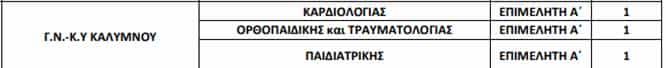 Ειδικότερα για το Νοσοκομείο Καλύμνου θα καλυφθούν 3 θέσεις όπως παρακάτω: