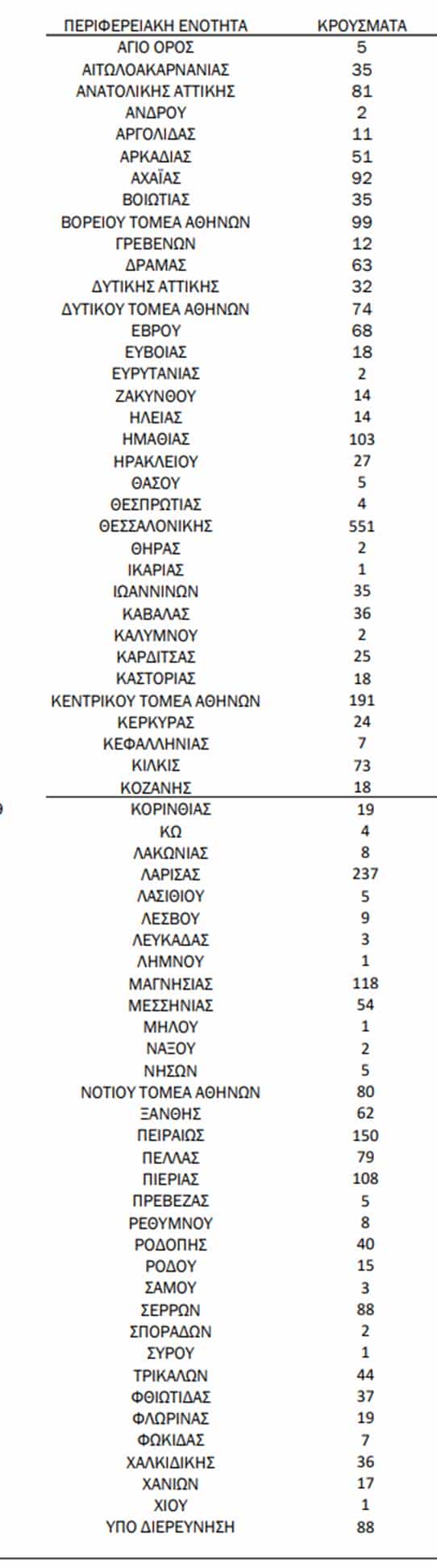 Δείτε αναλυτικά τα κρούσματα ανά ΠΕ