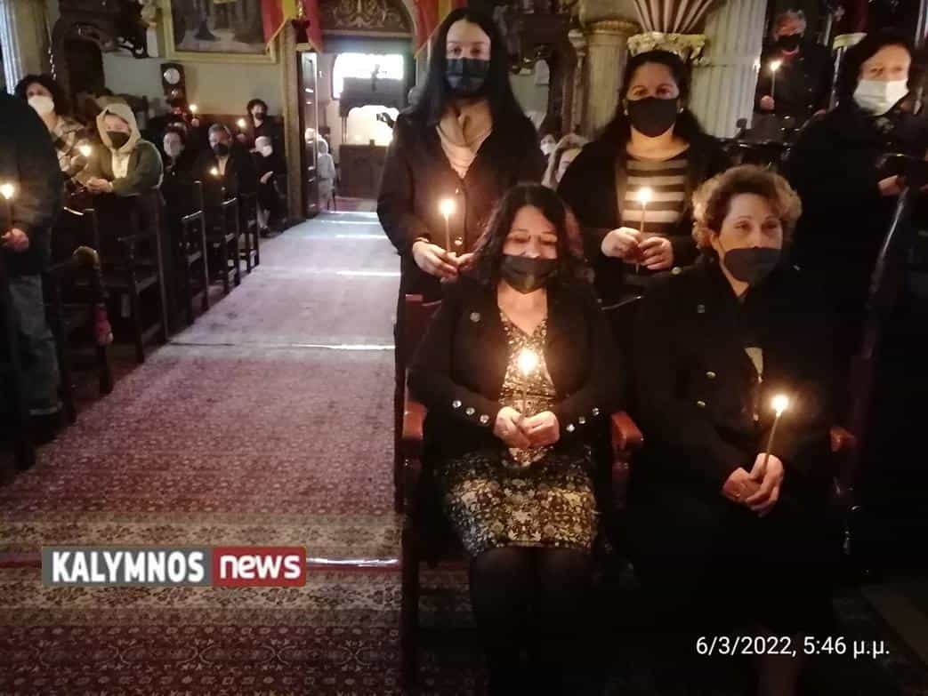 Τελέστηκε σήμερα Κυριακή 6 Μαρτίου 2022, στις 5.00 το απόγευμα, στον καθεδρικό Ναό της Παναγίας Κεχαριτωμένης στη Χώρας Καλύμνου. Χοροστάτησε λόγω απουσίας του Μητροπολίτη ο Αρχιερατικός Επίτροπος και εφημέριος του Ναού πρωτ. Αμφιλόχιος Σακαλλέρος με την παρουσία όλου του Ιερού Κλήρου του νησιού.