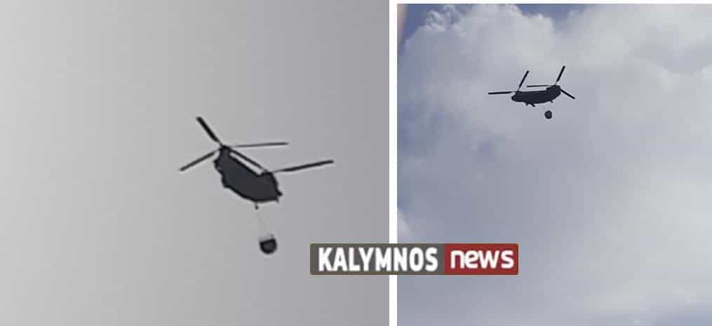 Το ελικόπτερο ΣΙΝΟΥΚ προβαίνει σε συνεχείς ρίψεις νερού, σε σημεία του μετώπου στα οποία δεν μπορούν να προσεγγίσουν τροχοφόρα πυροσβεστικά οχήματα και επίγειες δυνάμεις.
