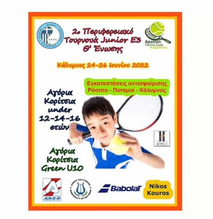 Πραγματοποιείται για πρώτη φορά στο νησί της Καλύμνου,24-26 Ιουνίου 2022, στο πλαίσιο του πρωταθλήματος tennis Junior του Εθνικού ταμπλό, το 2ο Περιφερειακό τουρνουά Ε3 της Θ Ένωσης (κατηγορία που ανήκει η Δυτική Αττική και τα Δωδεκάνησα).