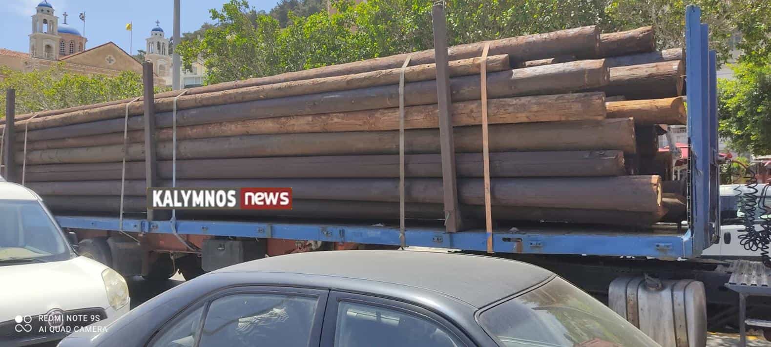 Μία νταλίκα φορτωμένη με στύλους, έφτασε σήμερα Τετάρτη 1 Ιουνίου 2022 στην Κάλυμνο.
