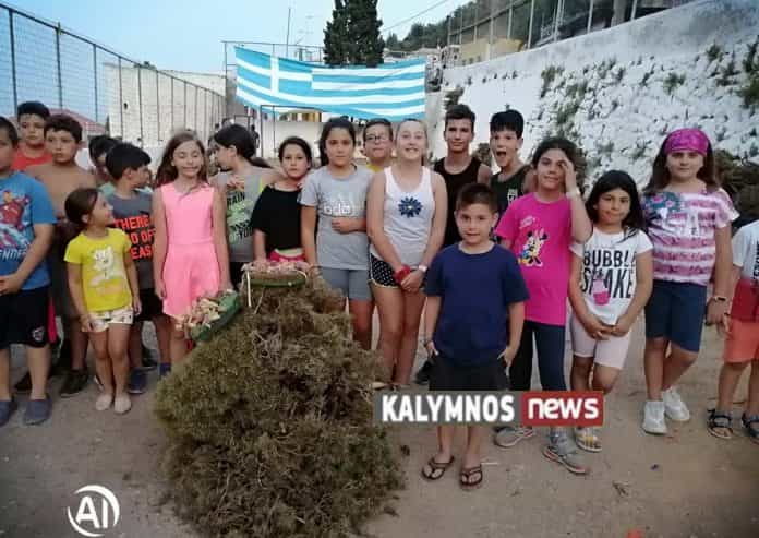 Ένα έθιμο που παραμένει ζωντανό σε κάθε γειτονιά της Καλύμνου όπως παλιά.Παιδιά μικρά και μεγάλα, να πηδάνε πάνω από τις φωτιές που είχαν ανάψει και να φωνάζουν σύμφωνα με το καλύμνικο έθιμο : «Τ’ Αϊ Γιαννιού τ’ ατσάλιιι..της γριάς το ποντικάλι»