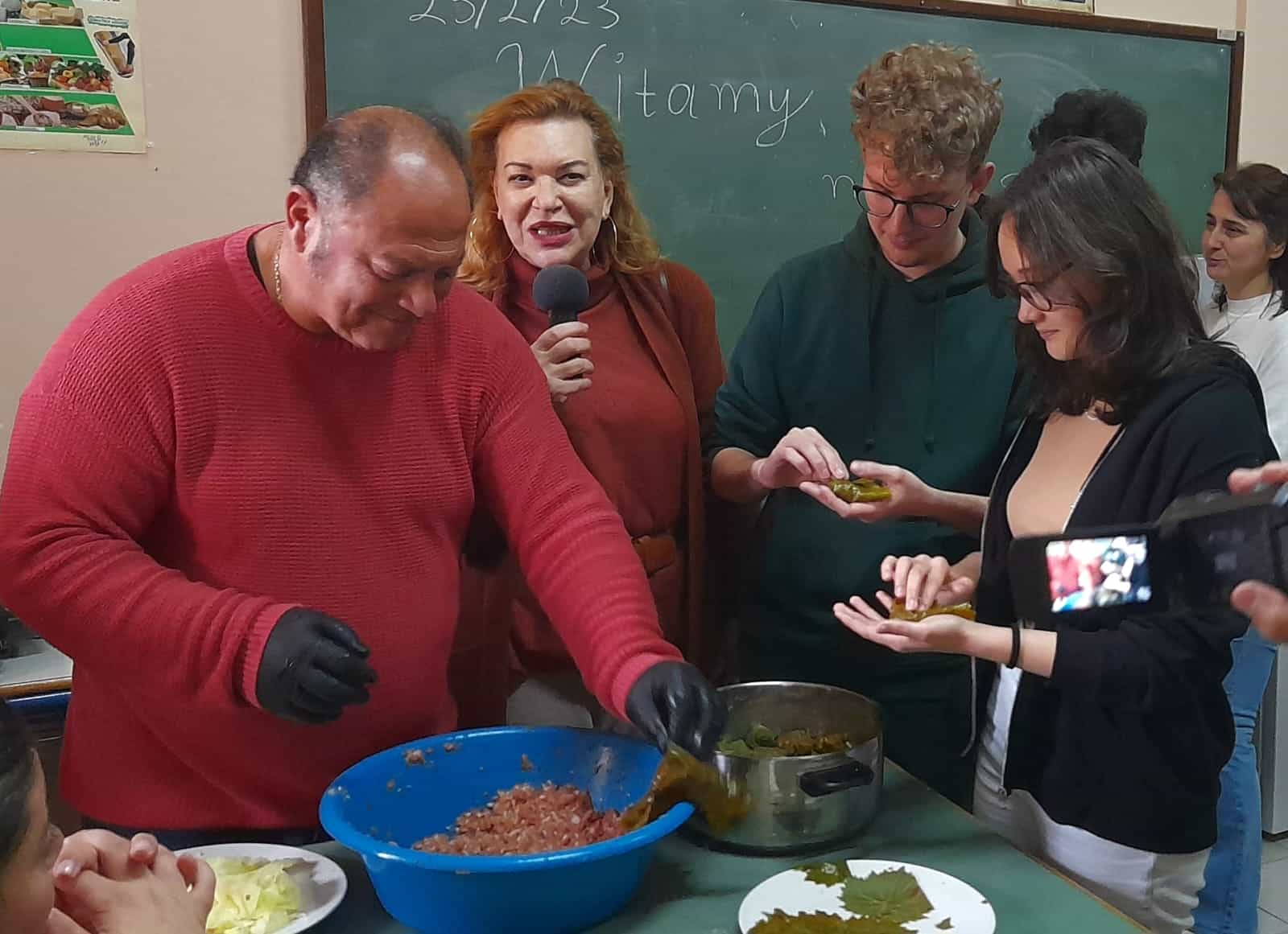 Σκοπός της επίσκεψης να μάθουν και να παρασκευάζουν το παραδοσιακό και αγαπημένο φαγητό της Καλύμνου, ντολμάδες (Καλύμνικα φύλλα).