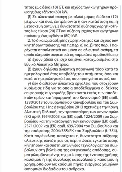 Δημοσιεύτηκε στο ΦΕΚ η ρύθμιση “Διαχείρισης πλεονάζουσας αλιευτικής ικανότητας” για την αύξηση χωρητικότητας και ιπποδύναμης στα αλιευτικά σκάφη.