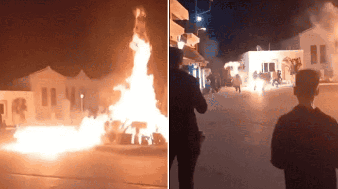 Στη συνέχεια, η δράση των νεαρών δεν σταμάτησε εκεί, καθώς έβαλαν στο στόχαστρο και το πνευματικό πολιτιστικό κέντρο Μαλώνας. Συγκεκριμένα, πέταξαν βεγγαλικά μπροστά από την πύλη του κτιρίου, τα οποία εξερράγησαν και προκάλεσαν εκκωφαντικό θόρυβο.