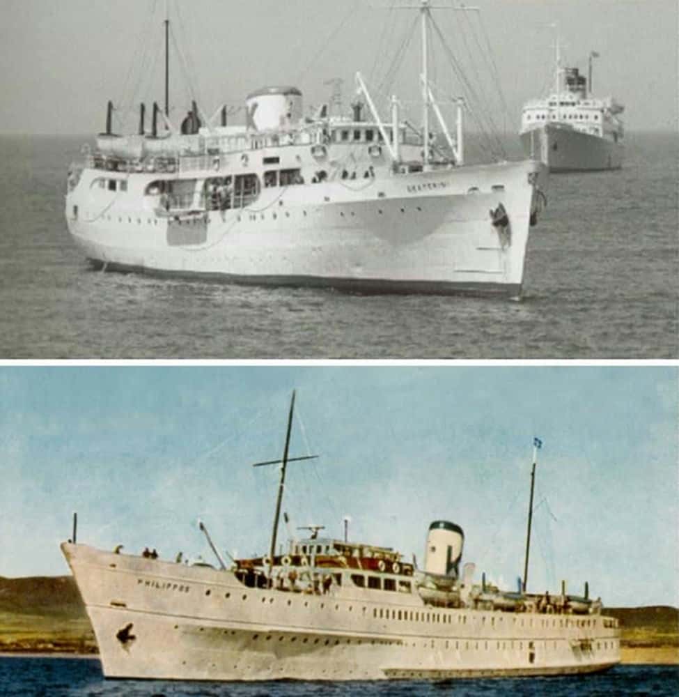 Β. Πλοίο «ΦΙΛΙΠΠΟΣ».Ναυπηγήθηκε το 1940. Το 1955 αγοράστηκε από την Ατμοπλοϊα ΚΑΒΟΥΝΙΔΗ. Ταξίδεψε ως Ακτοπλοικό στα Δωδεκάνησα και ως τουριστικό στην Αδριατική. Στις 23 Φεβρουαρίου υπέστη σοβαρές ζημιές από πυρκαγια που ξέσπασε ενώ επισκευαζόταν στο Κερατσίνι.