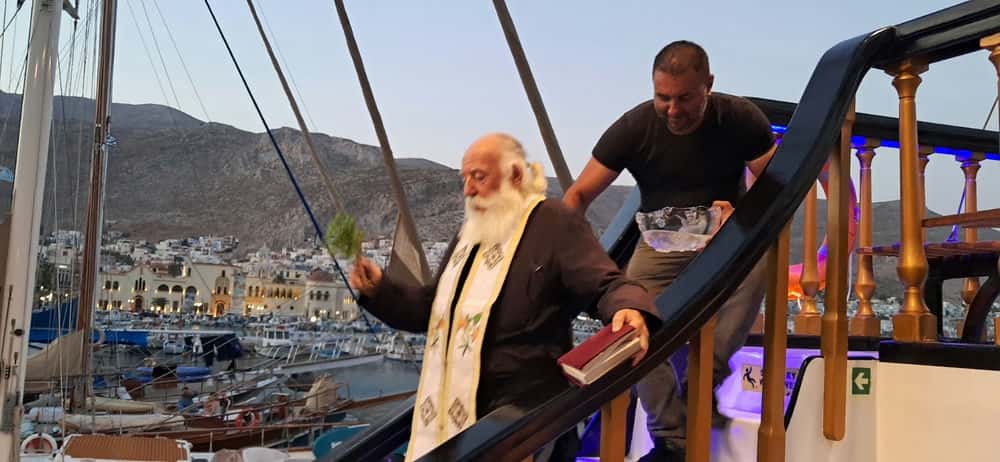 Πριν αναφερθούμε στη ναυπήγηση και στα στοιχεία του νεότευκτου πλοίου, παραθέτουμε φωτογραφίες από τον αγιασμό που τέλεσε ο π. Τίτος Καμπούρης, αλλά και τις στιγμές χαράς και συγκίνησης του Χριστόδουλου και της οικογένειας του.
