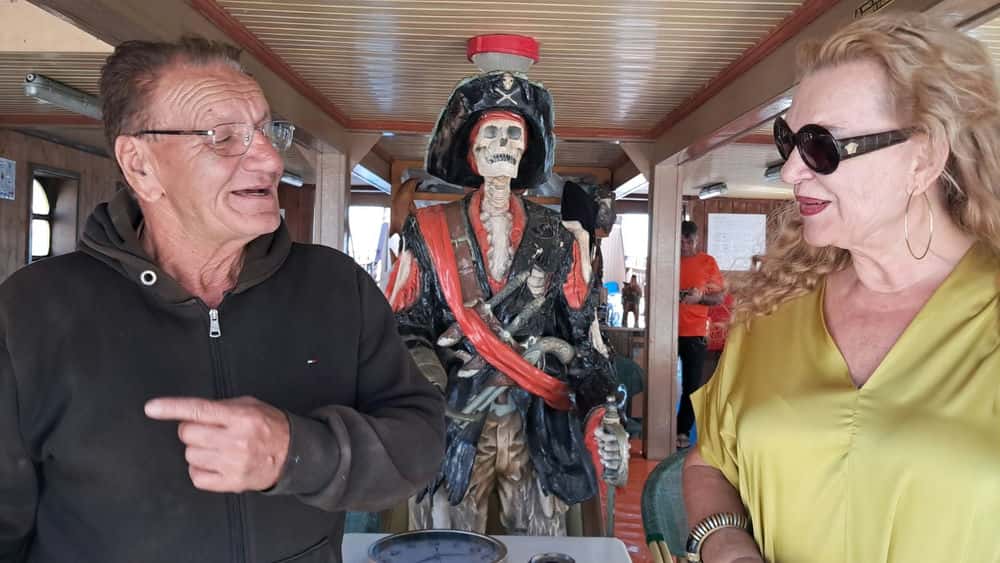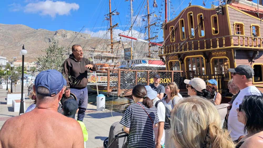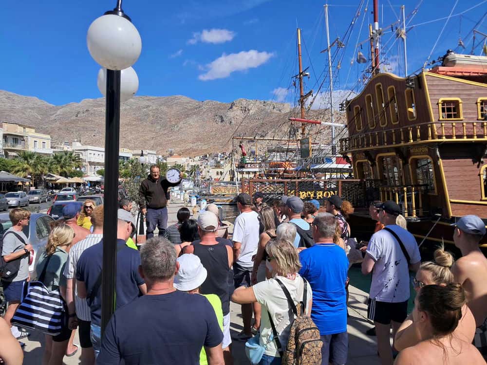 Τετάρτη 9 Οκτωβρίου 2024, μεσημέρι, στο λιμάνι της Καλύμνου και ο καπετάν Δρόσος Σαρούκος(Μαμάχα) λίγο πριν αναχωρήσει με το “πειρατικό” ημερόπλοιο Black Pearl για συνέχιση της ημερήσιας εκδρομής, μας μιλά για την επιβατική κίνηση στη φετινή σεζόν. Εξέφρασε την ικανοποίηση ότι πήγαν καλά και όπως μας λέει, στους 4 μήνες του καλοκαιριού η επιβατική κίνηση ήταν στο φουλ ,ενώ μειωμένη στο 50% είναι τώρα τον Οκτώβριο.
