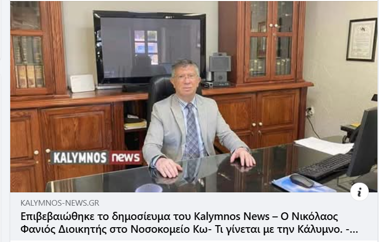 Μία αιχμηρή και γεμάτη αγανάκτηση ανάρτηση έκανε ο πρώην Δήμαρχος Καλυμνίων, Γεώργιος Ρούσσος, με αφορμή την απόφαση του Υπουργείου Υγείας να μετακινήσει τον μέχρι σήμερα Διοικητή του Γενικού Νοσοκομείου – Κέντρου Υγείας Καλύμνου «Το Βουβάλειο», Νικόλαο Φανιό, στο Γενικό Νοσοκομείο – Κέντρο Υγείας Κω «Ιπποκράτειο». Η απόφαση αυτή αφήνει το Νοσοκομείο της Καλύμνου χωρίς διοικητή, γεγονός που έχει προκαλέσει αντιδράσεις.
