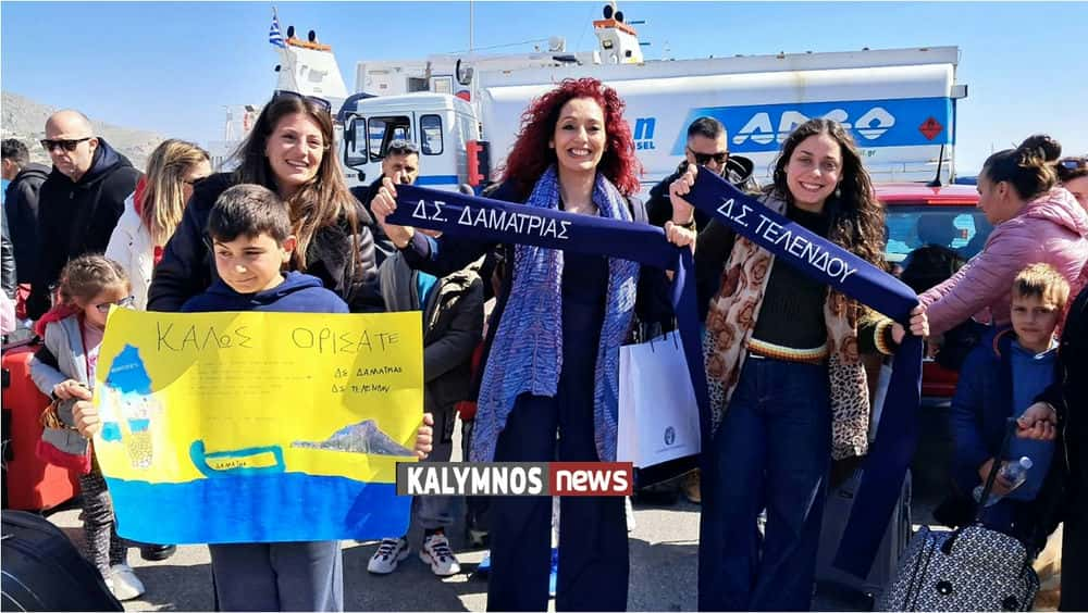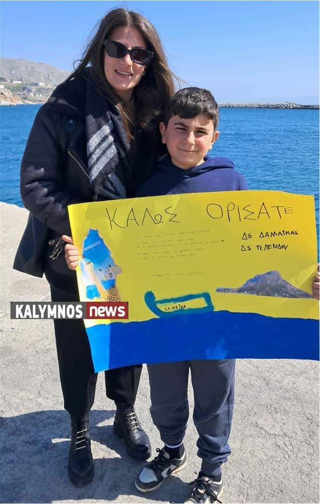 Το μεσημέρι της Παρασκευής, ο Σάββας, μαζί με τη δασκάλα του, Δέσποινα Μιχαήλ, υποδέχθηκαν την αποστολή της Ρόδου στο λιμάνι της Καλύμνου. Με ένα μεγάλο χαρτόνι στο χέρι, στο οποίο είχε ζωγραφίσει με αγάπη την αγαπημένη του Τέλενδο, καλωσόρισε θερμά τους 24 μαθητές και τους συνοδούς τους, δημιουργώντας μια στιγμή που θα μείνει αξέχαστη σε όλους.