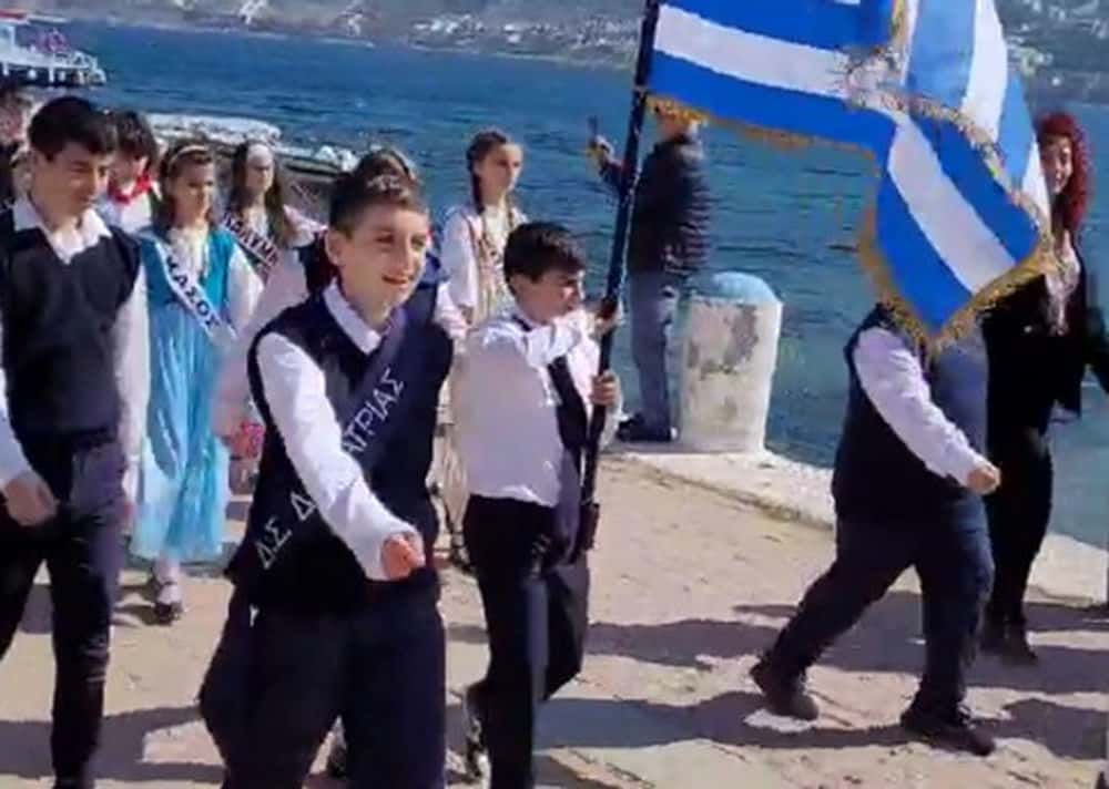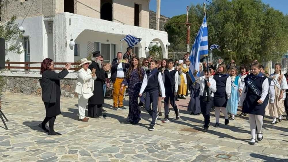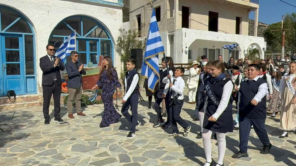 Η πιο συγκινητική στιγμή της ημέρας ήταν η μαθητική παρέλαση, όπου ο Σάββας, κρατώντας περήφανα τη γαλανόλευκη ως σημαιοφόρος, βάδισε μαζί με τα παιδιά από τη Ρόδο, σκορπίζοντας συγκίνηση και περηφάνια στους παρευρισκόμενους.