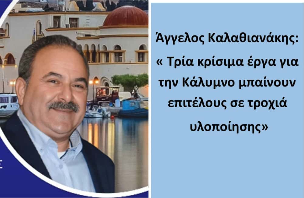 Άγγελος Καλαθιανάκης: ” Τρία κρίσιμα έργα για την Κάλυμνο μπαίνουν επιτέλους σε τροχιά υλοποίησης”