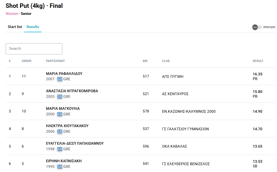 Χθες Σάββατο αγωνίστηκε στον ακοντισμό η Καλλιόπη Μεϊμάρη, ενώ σήμερα Κυριακή σειρά είχε η πρωταθλήτρια Μαρία Μαγκούλια στη σφαιροβολία. Η Μαρία Μαγκούλια, με προπονητή τον Γιάννη Μπαρλή, αν και είχε τρεις άκυρες προσπάθειες από τις έξι και απείχε 1,73μ από το ατομικό της ρεκόρ (16,63μ.), κατάφερε στην 4η βολή να πετύχει 14,90 μέτρα και να ανέβει στο βάθρο, κατακτώντας την 3η θέση.