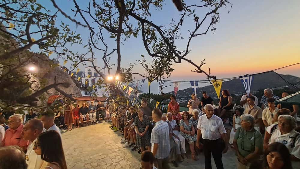 Ακολούθησε Ιερά Αγρυπνία που θα διαρκέσει έως τα μεσάνυχτα, μετατρέποντας την ατμόσφαιρα σε μια μοναδική πνευματική εμπειρία.