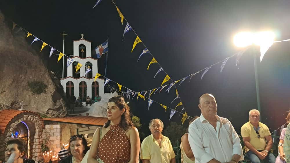 Στις 8:00 το βράδυ τελέστηκε Μέγας Πανηγυρικός Αρχιερατικός Εσπερινός μετ’ αρτοκλασίας, χοροστατούντος του Θεοφιλεστάτου Επισκόπου Διοκλείας κ. Νεκταρίου, Πρωτοσύγκελλου της Ιεράς Αρχιεπισκοπής Αμερικής, με τη συμμετοχή του Σεβασμιωτάτου Μητροπολίτου Λέρου, Καλύμνου και Αστυπαλαίας κ.κ. Παϊσίου, καθώς και ιερέων της τοπικής Εκκλησίας.