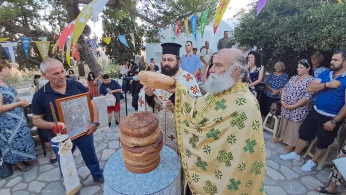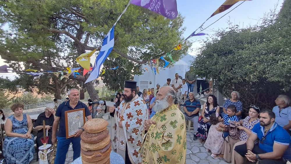 Με ιδιαίτερη κατάνυξη τελέστηκε σήμερα, Κυριακή 27 Ιουλίου 2025, ο πανηγυρικός εσπερινός μετά αρτοκλασίας προς τιμήν της Οσίας Ειρήνης Χρυσοβαλάντου, στο ομώνυμο παρεκκλήσι που βρίσκεται στο συγκρότημα των παρεκκλησίων της Ιεράς Μονής Αγίων Πάντων, στον Άγιο Σάββα στην Κάλυμνο.