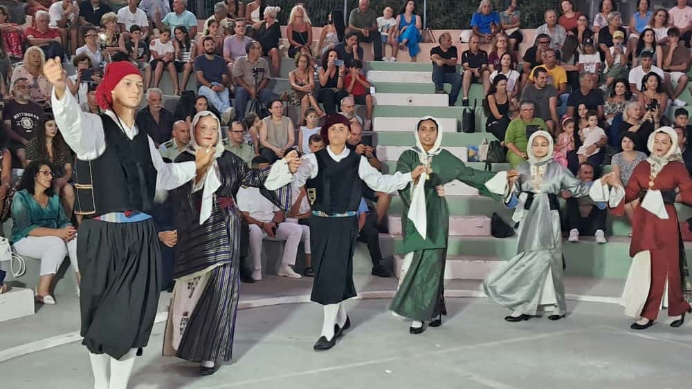 Η βραδιά εμπλουτίστηκε από τις εντυπωσιακές χορευτικές παρουσιάσεις του Λυκείου των Ελληνίδων, που μετέφεραν την αυθεντική παράδοση και τον παλμό του νησιού, συνοδευόμενες από το εξαιρετικό παραδοσιακό μουσικό σχήμα με τον Μανώλη Φράγκο, τον Γιάννη Καμπουράκη και το νεαρό Κυριάκο Μπαϊράμη