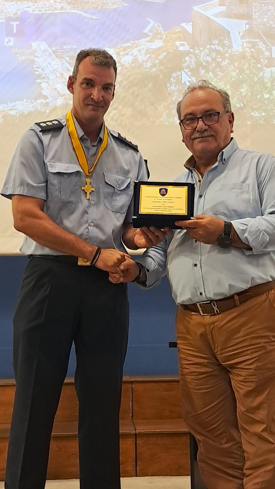 Μέσα σε έντονο συγκινησιακό κλίμα, ο Δήμος Καλυμνίων και το προσωπικό του Εθελοντικού Πυροσβεστικού Σταθμού Β’ Τάξεως Καλύμνου τίμησαν την Παρασκευή 11 Ιουλίου 2025 τον Διοικητή του Σταθμού, Πυραγό Παναγιώτη Κωνσταντόπουλο, με αφορμή τη μετάθεση του Μονάδα της Αττικής.