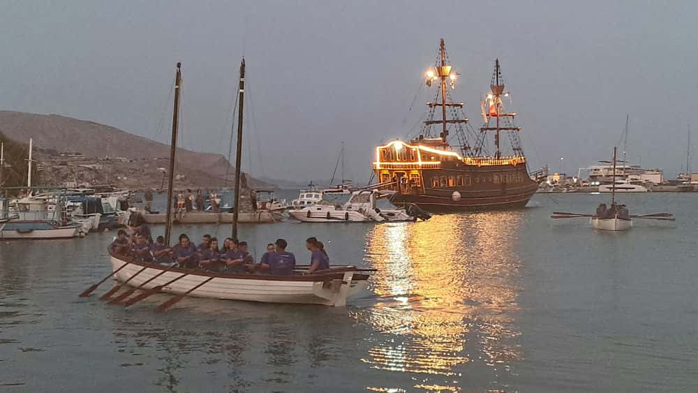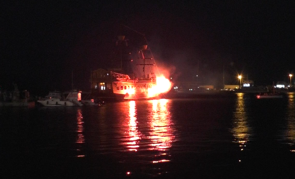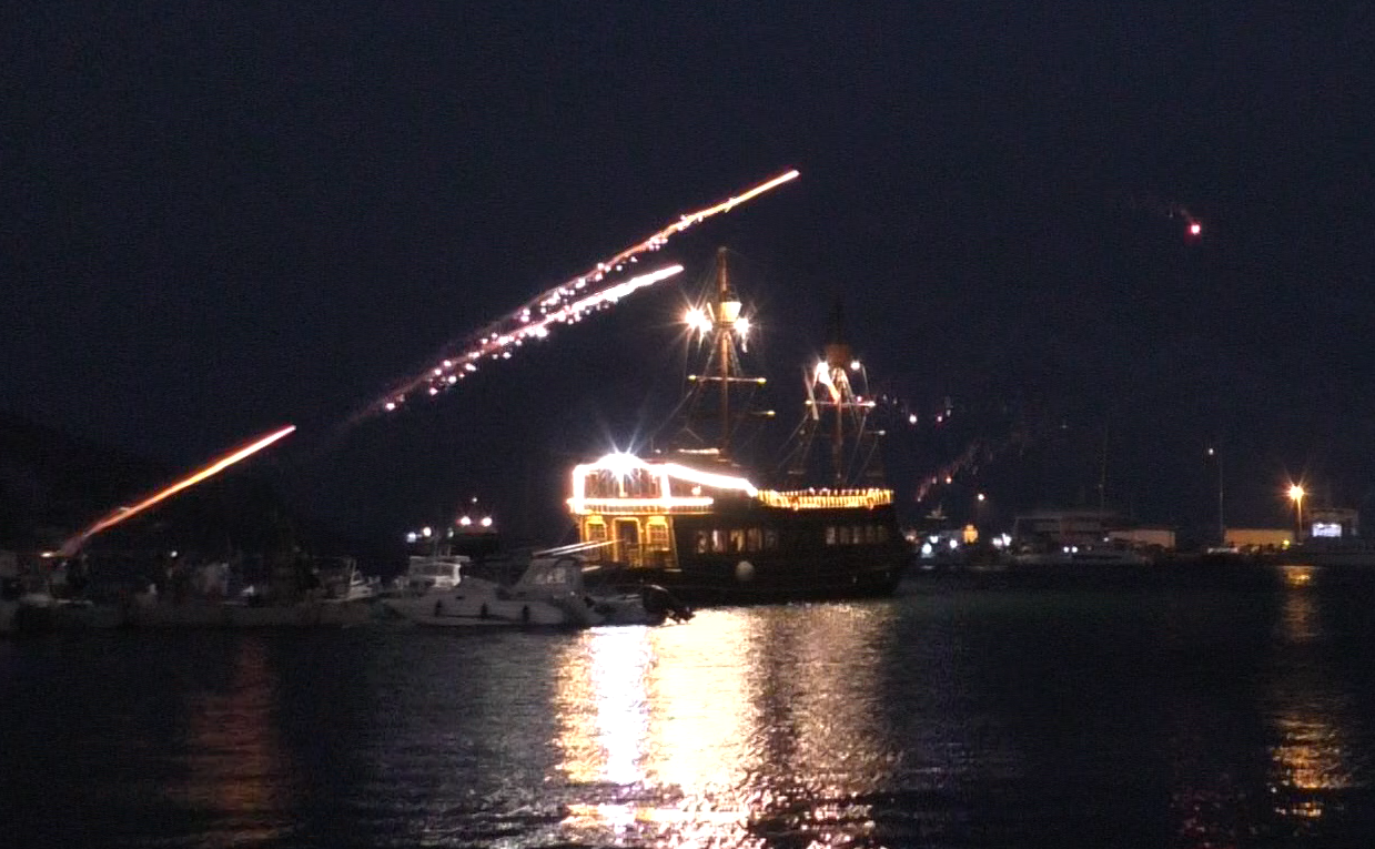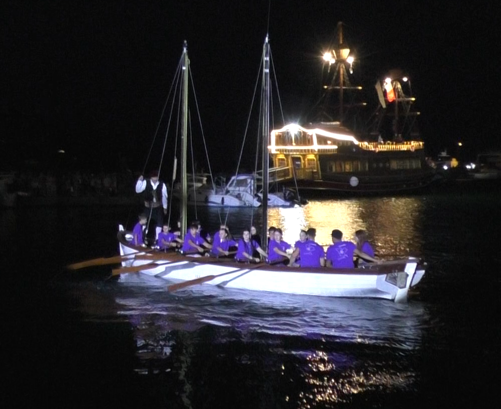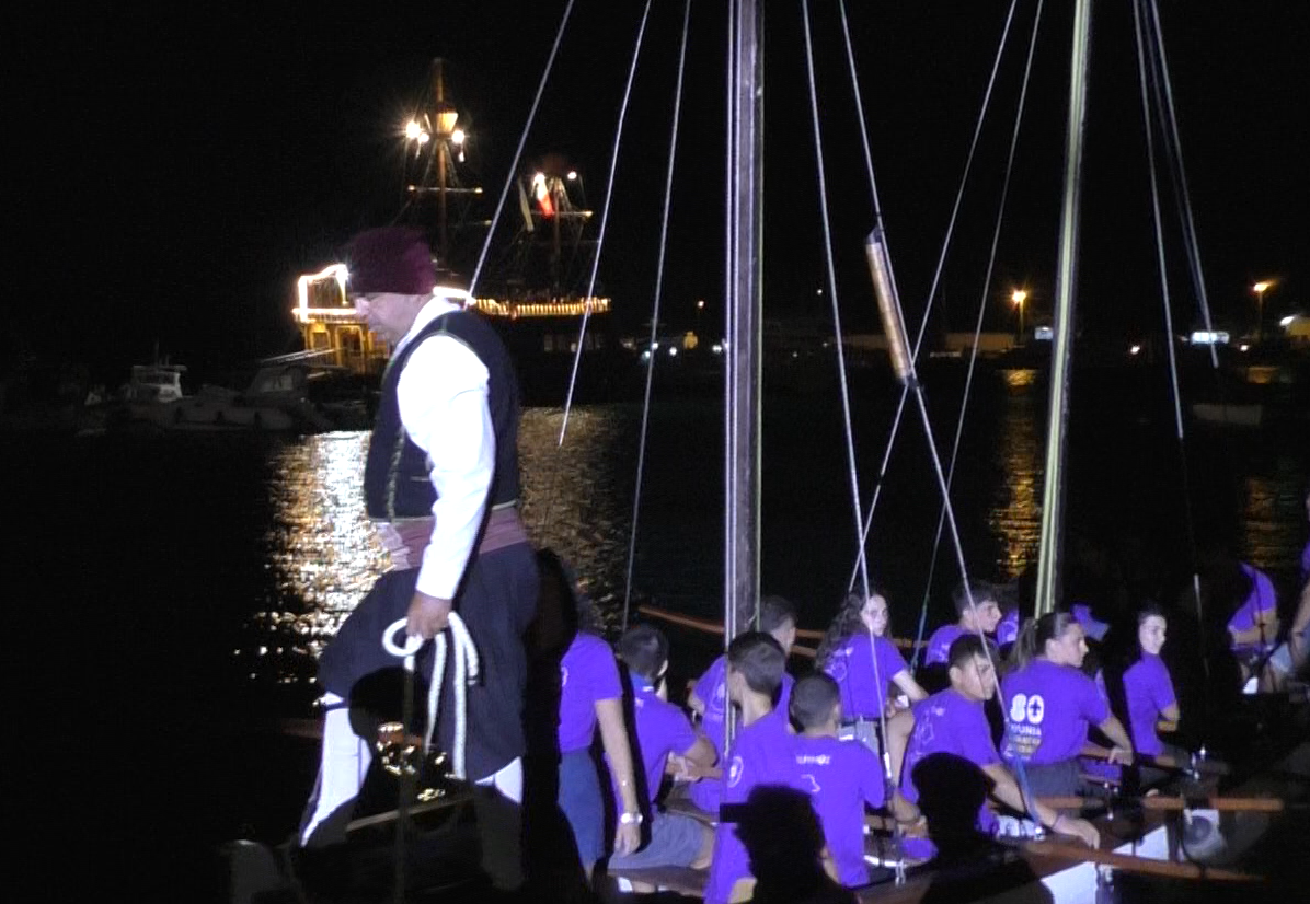 Η αναπαράσταση ζωντάνεψε με δύο βασικά σκάφη: την τουρκική ναυαρχίδα, που “ενσάρκωσε” το επιβλητικό σκάφος “Μπάυρον” των αδελφών Κωνσταντίνου και Βύρωνα Μαρκόπουλου, και το μικρό αλιευτικό “Πρόδρομος” του Μικέ Μπαιράμη, που συμβόλιζε το πυρπολικό του Ανδρέα Μιαούλη.