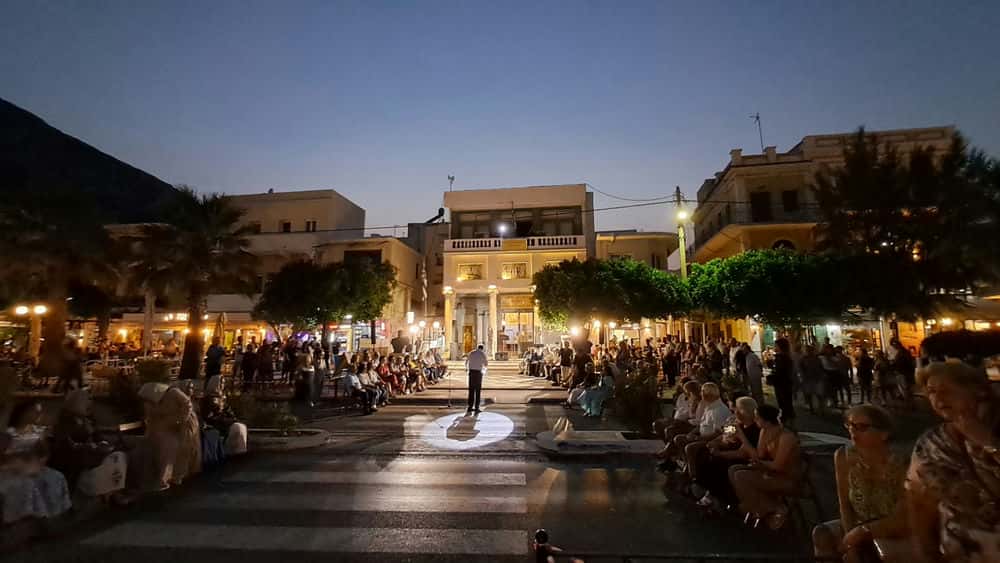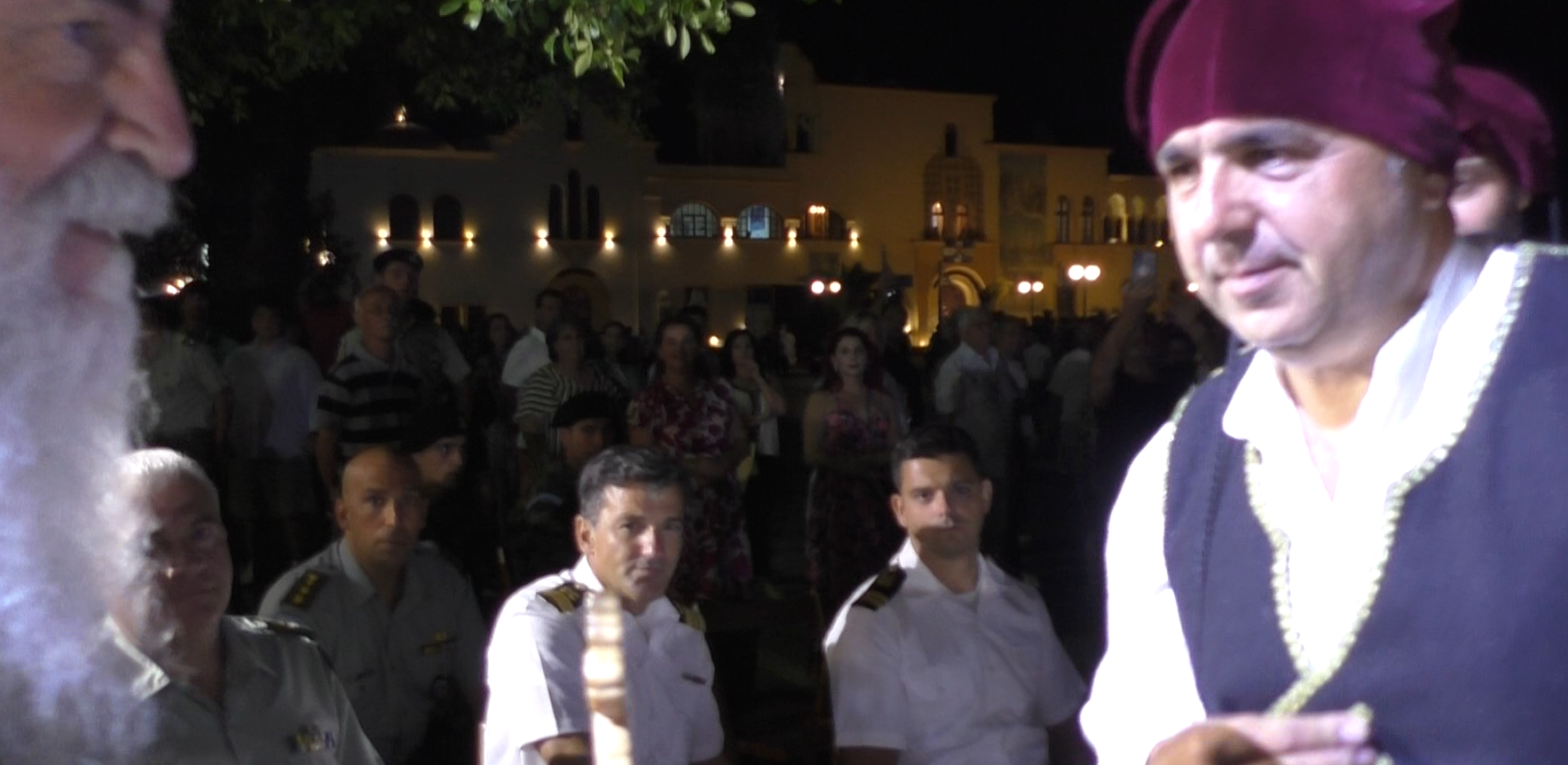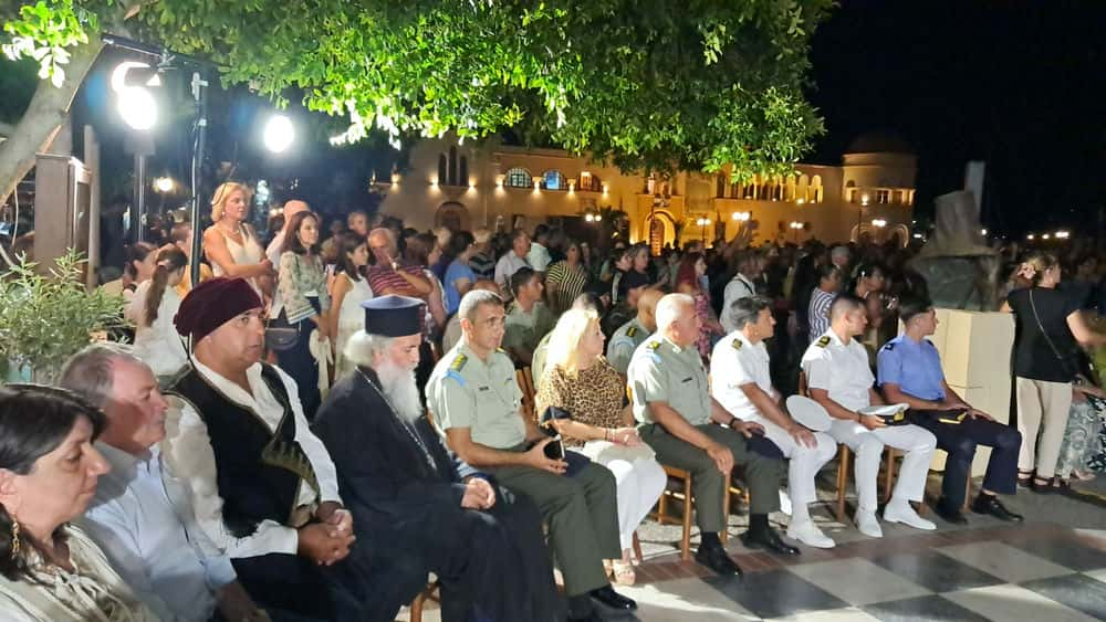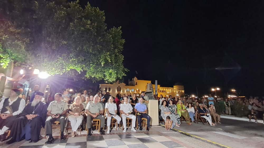Η βραδιά ξεκίνησε με τη Ζαφειρία Γκουλή, συνεργάτιδα του Επάρχου, η οποία κάλεσε στο βήμα τον Έπαρχο Μανώλη Μουσελλή. Ο Μανώλης Μουσελλής τόνισε πως η εκδήλωση έχει πλέον καθιερωθεί ως θεσμός, αναδεικνύοντας τη σημασία της Ναυμαχίας του Γέροντα για τον Αγώνα της Ανεξαρτησίας. Στον κόλπο του Γέροντα, ο ελληνικός στόλος με περίπου 75 πλοία και πυρπολικά, υπό την ηγεσία των Ανδρέα Μιαούλη, Γεώργιου Σαχτούρη, Γεώργιου Ανδρούτσου και Απόστολη Νικολή, συνέτριψε τον αριθμητικά υπέρτερο τουρκοαιγυπτιακό στόλο των 250 πλοίων, σε μια μάχη καθοριστικής σημασίας για την Επανάσταση.
