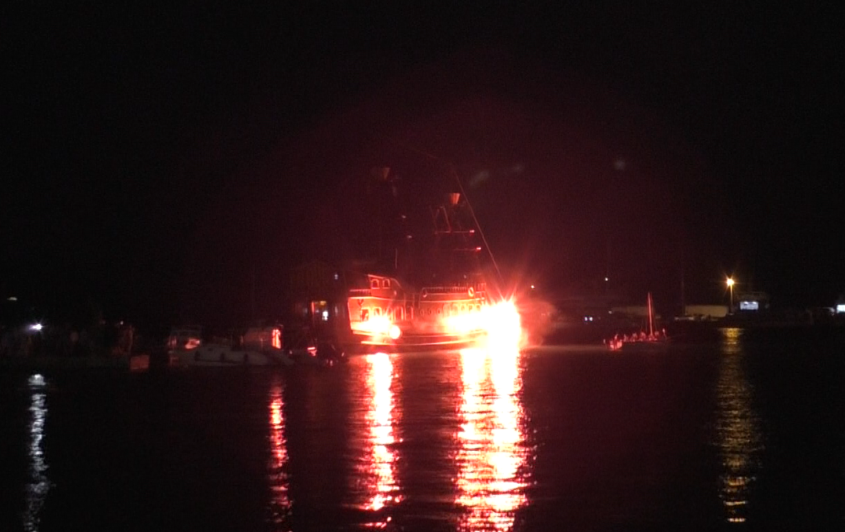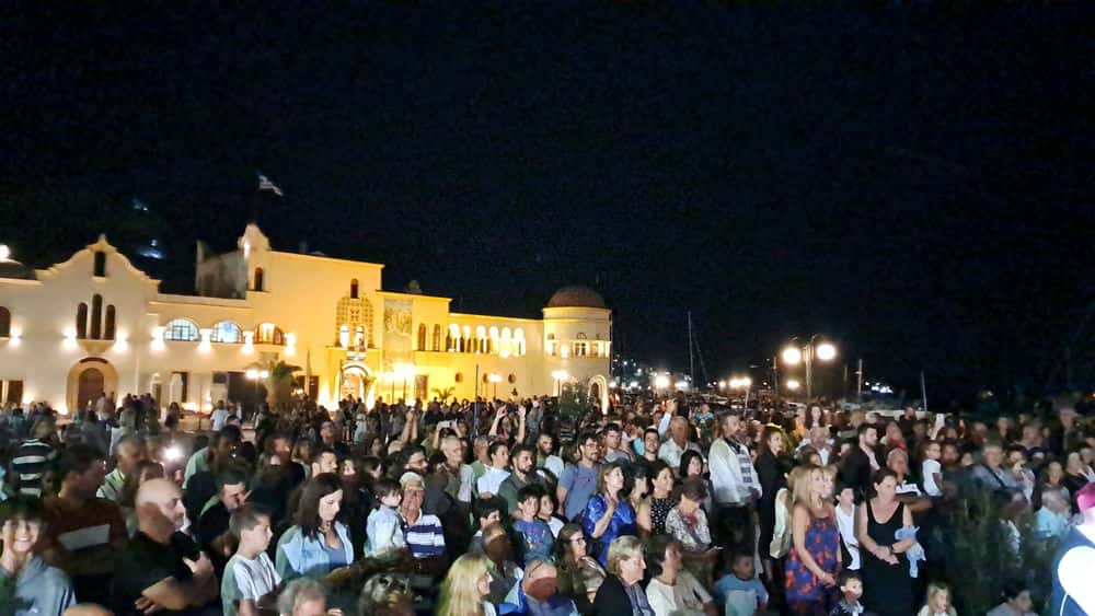 Στην εκδήλωση συμμετείχαν λέμβοι προσκόπων, οι οποίοι μετέφεραν τον “Ανδρέα Μιαούλη” στη στεριά, για να ασπαστεί τον Σταυρό, ενώ οι καμπάνες των εκκλησιών ήχησαν χαρμόσυνα. Η υποδοχή ήταν συγκινητική.