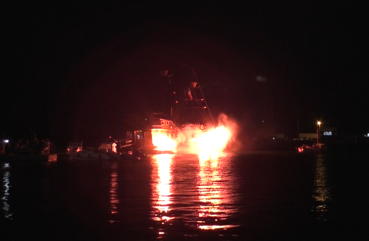 Με τη δύναμη των πυροτεχνημάτων, των βεγγαλικών και των φωτιστικών εφέ, η πυρπόληση παρουσιάστηκε με μοναδική παραστατικότητα και ήταν εντυπωσιακή